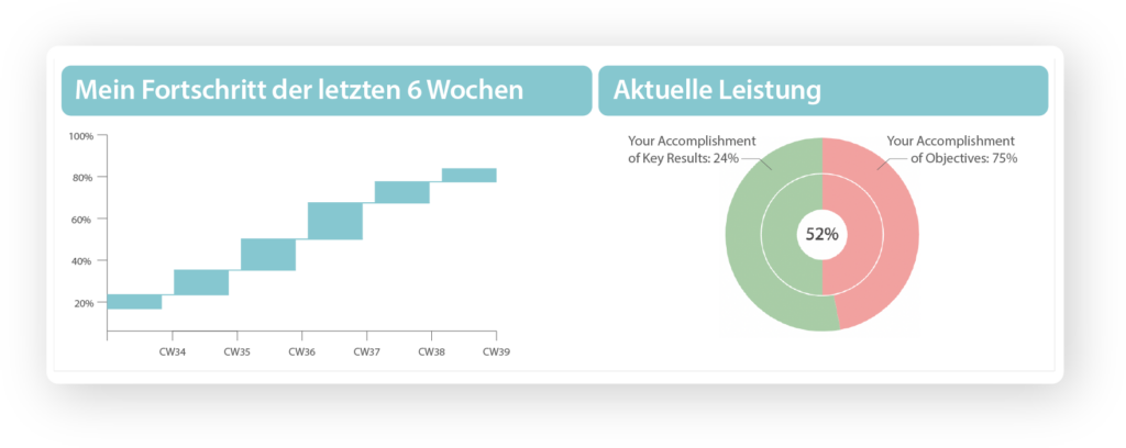 Der Uffective OKR Smart Start sammelt alle OKRs an einer Stelle und gibt Ihnen alle Informationen, die Sie über Ihre OKRs brauchen. Sie können Ihre persönlichen Ziele und Key Results, Leistungen im laufenden Quartal sowie Ihre Fortschritte in den letzten sechs Wochen tracken. Ebenfalls können Sie auch die OKRs Ihrer Mitarbeiter auf einfachem Wege verfolgen, indem Sie diese zu Ihrem Dashboard hinzufügen.